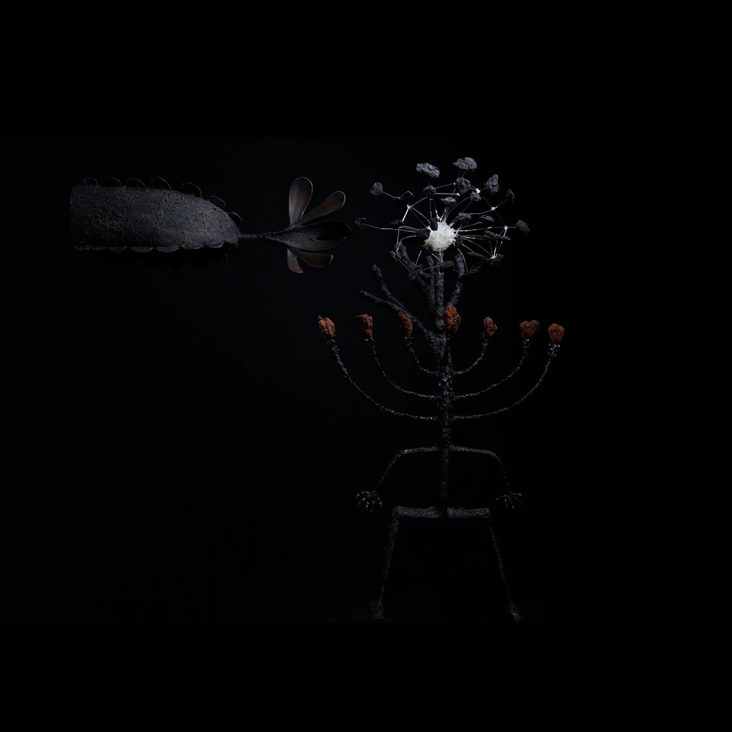 材料:白鐵絲、木、鐵絲、乾燥植物、乾燥果實、砂漿塗料